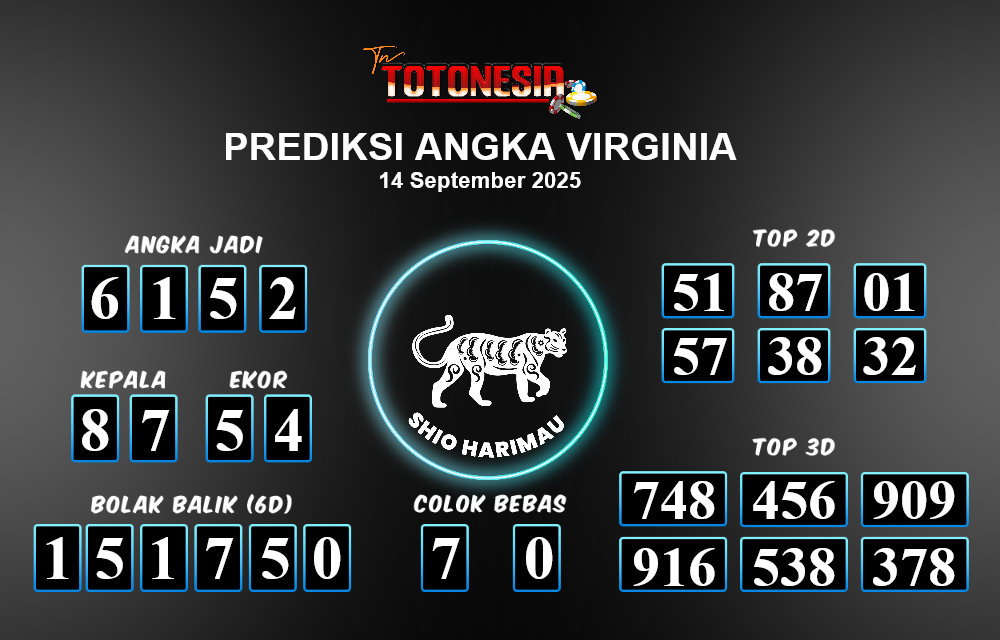 Toto Nesia : Bocoran Prediksi Togel VIRGINIA Tanggal 14 SEPTEMBER 2025