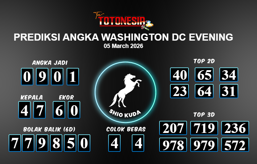Toto Nesia : Bocoran Prediksi Togel WASHINGTON DC EVENING Tanggal 05 MARET 2026