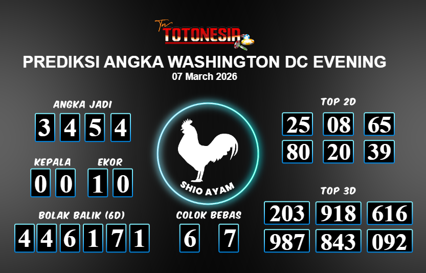 Toto Nesia : Bocoran Prediksi Togel WASHINGTON DC EVENING Tanggal 07 MARET 2026