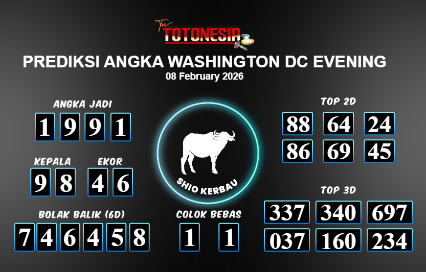 Toto Nesia : Bocoran Prediksi Togel WASHINGTON DC EVENING Tanggal 08 FEBUARI 2026