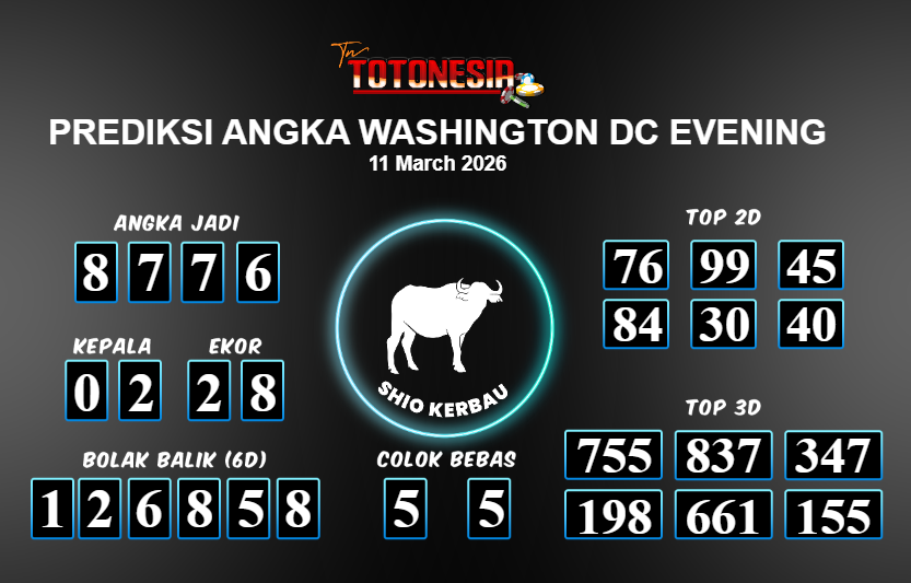 Toto Nesia : Bocoran Prediksi Togel WASHINGTON DC EVENING Tanggal 11 MARET 2026