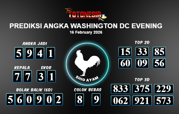 Toto Nesia : Bocoran Prediksi Togel WASHINGTON DC EVENING Tanggal 16 FEBUARI 2026