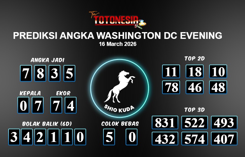 Toto Nesia : Bocoran Prediksi Togel WASHINGTON DC EVENING Tanggal 16 MARET 2026