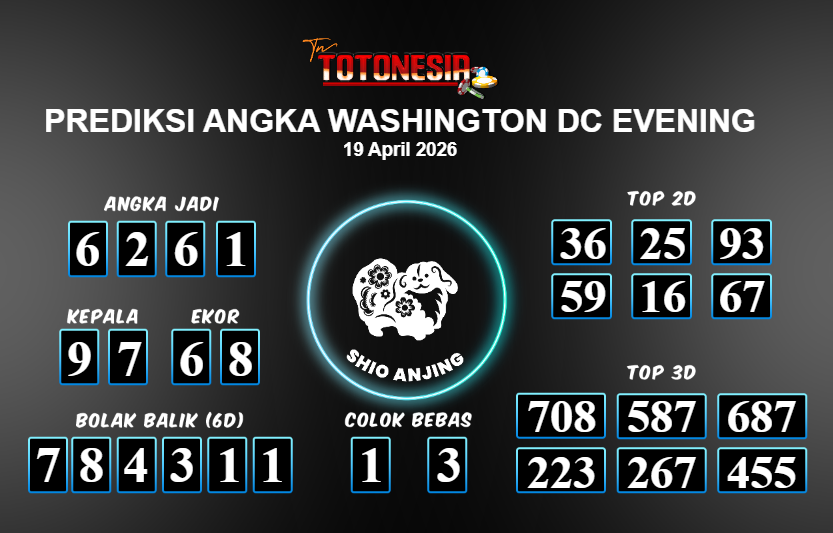 Toto Nesia : Bocoran Prediksi Togel WASHINGTON DC EVENING Tanggal 19 APRIL 2026