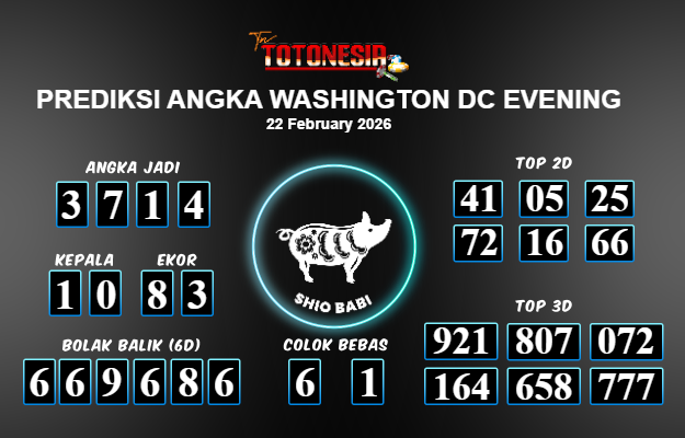 Toto Nesia : Bocoran Prediksi Togel WASHINGTON DC EVENING Tanggal 22 FEBUARI 2026