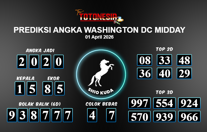 Toto Nesia : Bocoran Prediksi Togel WASHINGTON DC MIDDAY Tanggal 01 APRIL 2026