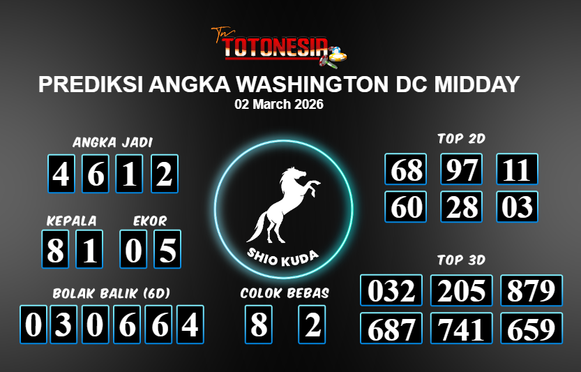 Toto Nesia : Bocoran Prediksi Togel WASHINGTON DC MIDDAY Tanggal 02 MARET 2026
