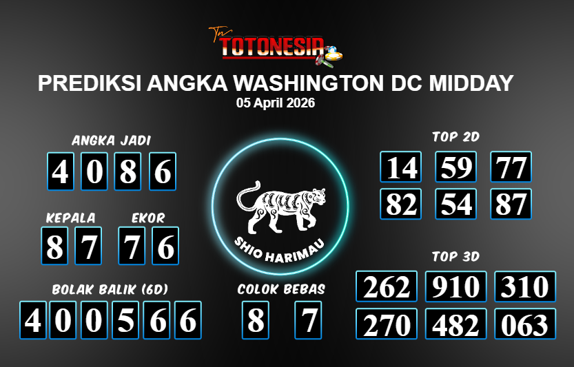 Prediksi WASHINGTON DC MIDDAY adalah perhitungan nomor togel unggulan dari agen suhu togel yang menyajikan angka prediksi paling akurat, sehingga memberikan banyak keuntungan saat bermain di pasar togel WASHINGTON DC MIDDAY . TotoNesia adalah prediksi dengan rasio kemenangan tertinggi di Indonesia. Sebagai penyedia togel yang dapat dipercaya, kami bertekad untuk memberikan ramalan togel yang handal dengan hadiah terbesarnya. Maka dari itu, jangan sampai terlewatkan prediksi bandar togel dengan hadiah terbanyak bet 100 dari pasar togel terbaik WASHINGTON DC MIDDAY Daftar sekarang juga di bandar.