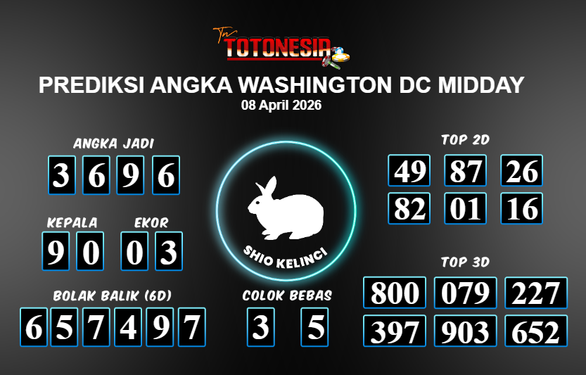 Toto Nesia : Bocoran Prediksi Togel WASHINGTON DC MIDDAY Tanggal 08 APRIL 2026