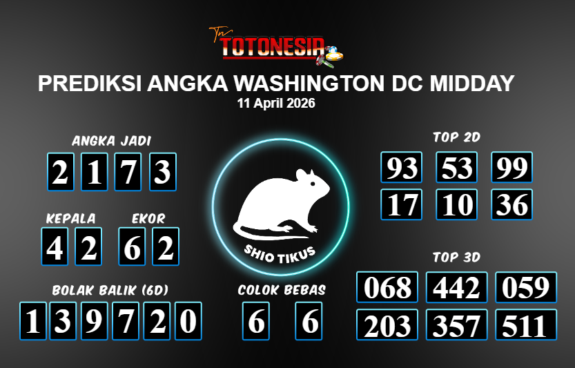 Toto Nesia : Bocoran Prediksi Togel WASHINGTON DC MIDDAY Tanggal 11 APRIL 2026