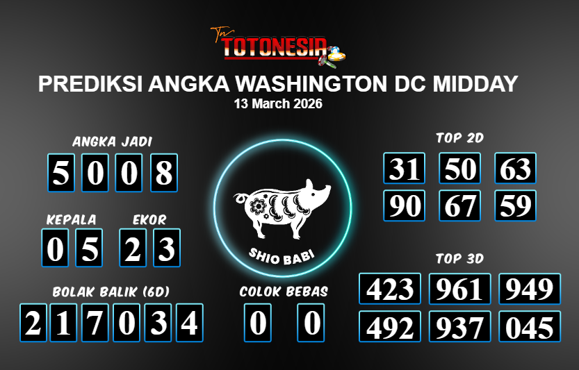 Toto Nesia : Bocoran Prediksi Togel WASHINGTON DC MIDDAY Tanggal 13 MARET 2026
