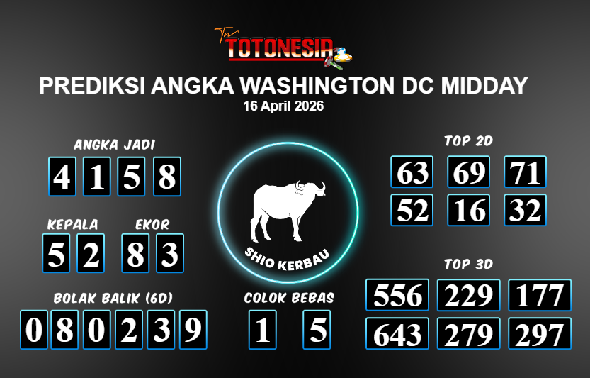 Toto Nesia : Bocoran Prediksi Togel WASHINGTON DC MIDDAY Tanggal 16 APRIL 2026