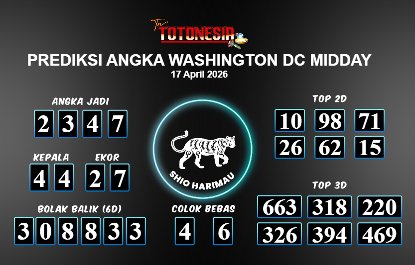Prediksi WASHINGTON DC MIDDAY adalah perhitungan nomor togel unggulan dari agen suhu togel yang menyajikan angka prediksi paling akurat, sehingga memberikan banyak keuntungan saat bermain di pasar togel WASHINGTON DC MIDDAY . TotoNesia adalah prediksi dengan rasio kemenangan tertinggi di Indonesia. Sebagai penyedia togel yang dapat dipercaya, kami bertekad untuk memberikan ramalan togel yang handal dengan hadiah terbesarnya. Maka dari itu, jangan sampai terlewatkan prediksi bandar togel dengan hadiah terbanyak bet 100 dari pasar togel terbaik WASHINGTON DC MIDDAY Daftar sekarang juga di bandar.