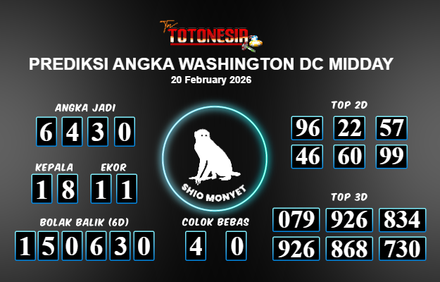 Toto Nesia : Bocoran Prediksi Togel WASHINGTON DC MIDDAY Tanggal 20 FEBUARI 2026