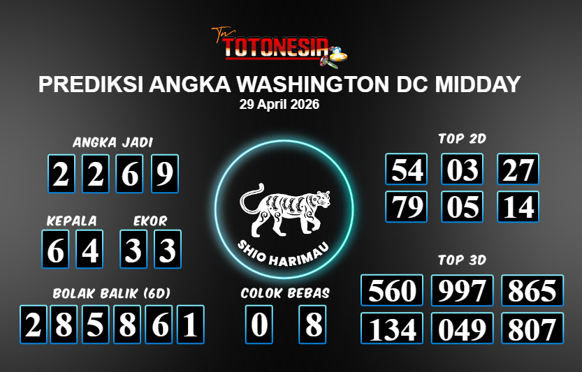 Prediksi WASHINGTON DC MIDDAY adalah perhitungan nomor togel unggulan dari agen suhu togel yang menyajikan angka prediksi paling akurat, sehingga memberikan banyak keuntungan saat bermain di pasar togel WASHINGTON DC MIDDAY . TotoNesia adalah prediksi dengan rasio kemenangan tertinggi di Indonesia. Sebagai penyedia togel yang dapat dipercaya, kami bertekad untuk memberikan ramalan togel yang handal dengan hadiah terbesarnya. Maka dari itu, jangan sampai terlewatkan prediksi bandar togel dengan hadiah terbanyak bet 100 dari pasar togel terbaik WASHINGTON DC MIDDAY Daftar sekarang juga di bandar.