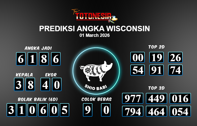 Toto Nesia : Bocoran Prediksi Togel WISCONSIN Tanggal 01 MARET 2026