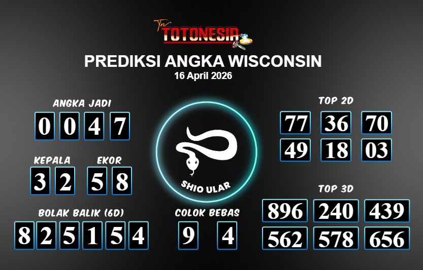 Toto Nesia : Bocoran Prediksi Togel WISCONSIN Tanggal 16 APRIL 2026