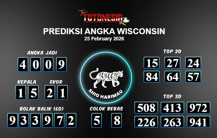 Toto Nesia : Bocoran Prediksi Togel WISCONSIN Tanggal 25 FEBUARI 2026