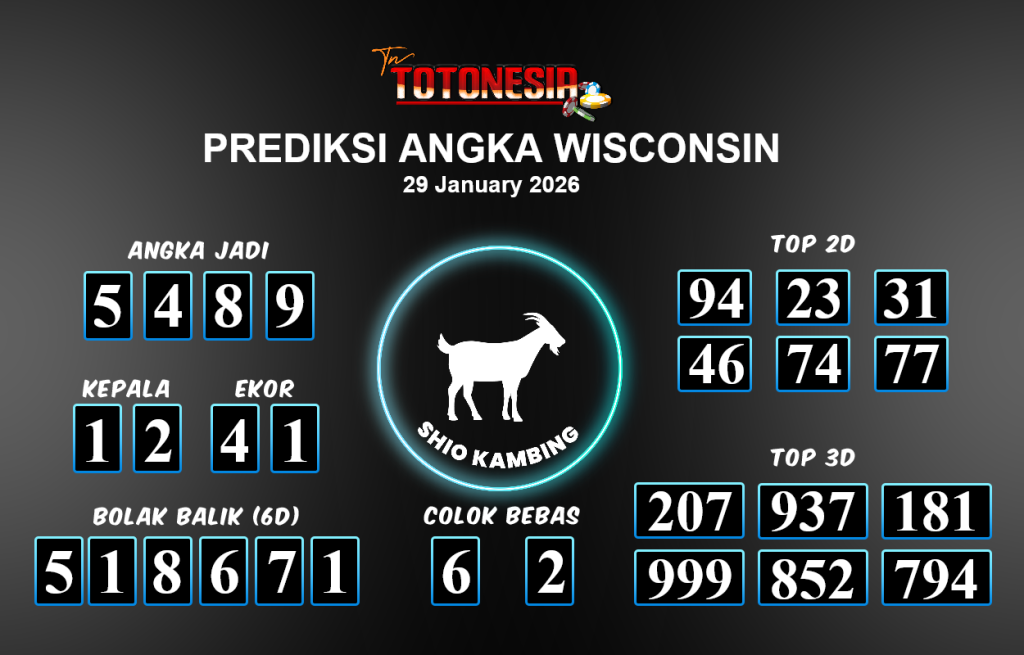 Toto Nesia : Bocoran Prediksi Togel WISCONSIN Tanggal 29 JANUARI 2026